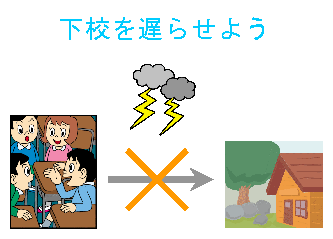 毎日の生活の中で最も雷に遭遇する確率が高いのが,登下校中でしょう。年間登校日は200日以上あり,1年間では相当の時間屋外にいることになります。そして,子どもたちは雷の危険性についてあまり知識がありません。大きな雷鳴が聞こえれば,怖くて逃げるでしょうが,まだ雨も降っていないときに落雷が起こることもありますので,登下校の時間帯は,雷鳴には大人が注意しておきましょう。下校のときは帰宅時間を遅らせることができますが,登校時は,遅刻しないように急ぐかも知れません。雷のときは時間に融通を利かせることを,事前に保護者へ知らせておくようにしましょう。