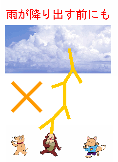 雷は電気です。雲の中で電気が溜まれば雷が発生します。雨粒の素になる雲の粒に電気を起こすしくみがあり,雲がないところには雷は発生しません。雲の粒が大きくなって雨粒に成長し,落下してくるのが先か,それとも電気が溜まって落雷の方が先になるかはどちらとも言えません。通常は,雨が降っているときにも入道雲は成長し,どんどん電気がつくられていきます。つまり,普通は雨が降っているときに落雷があります。雨が降っていなければ大丈夫だという観念ができてしまっているかも知れないですね。