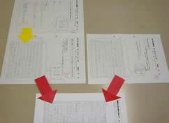 ◆比べる箇所(例:同じ内容を書いてあるところ)ごとに同じ色のマーカー(蛍光ペン)で色付けをさせ、同じ色の部分の書き方の違いを対比させることで、どのように違うのかを考えさせる活動を行いました。